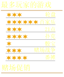 21点是一项最受欢迎的游戏. 游戏的目标是得牌越靠近21点越好. 若玩家得点数高於荷官, 他/ 她将是赢家. 所有扑克牌将是十点, 处个别牌自身的牌数之外和”A”牌视为”1”点或”11”点. 取出牌的数量不限, 只要总点数不可少於12点或多过21点. |